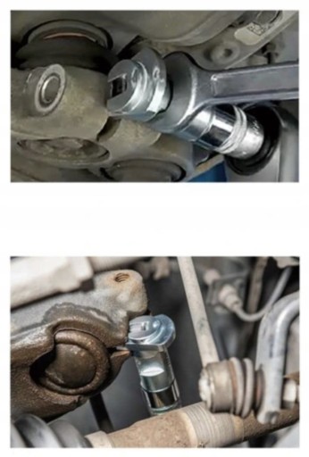 Rozszerzone amortyzatory i demontaż przegubów kulowych (oddzielne amortyzatory od klinów pod koła), szeroki rozstaw pozwala na uniwersalne zastosowanie równoległych powierzchni nacisku, aby zapobiec przypadkowemu przeskoczeniu lub ześlizgnięciu się narzędzia.