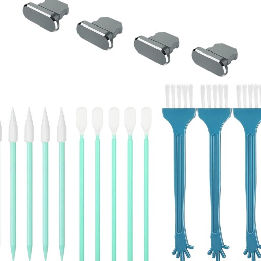 Zawartość opakowania: 4 x metalowe zatyczki przeciwkurzowe do telefonu, 3 x szczoteczka do czyszczenia głośników telefonu, 10 x waciki Kompleksowy zestaw, który spełni Twoje wymagania dotyczące czyszczenia telefonu