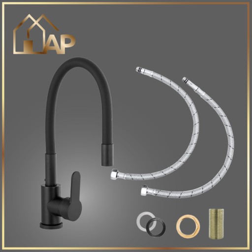 Bateria Kuchenna Czarna FLEX z Elastyczną Wylewką Zlew Kran Kuchenny