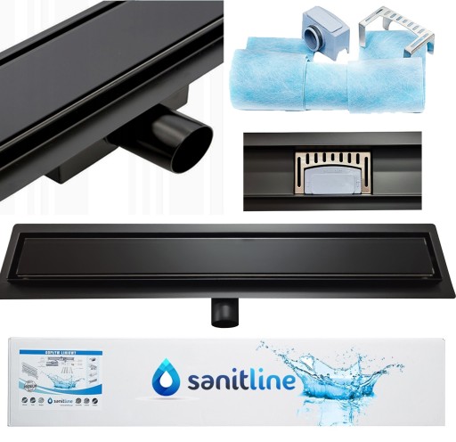 SANITLINE Линейный слив ЧЕРНОЕ СТЕКЛО/МАТОВЫЙ 70см