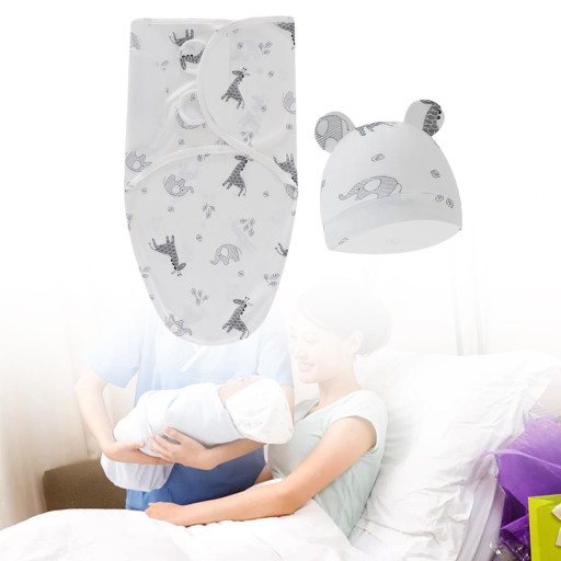 Noworodka Swaddle Wraps Hat Wygodny kocyk do przewijania dla nowonarodzonych dziewczynek Prezenty Żyrafa