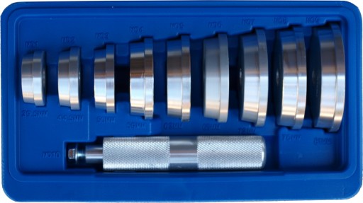 Zestaw służy do montażu poprzez pobijanie łożysk oraz uszczelniaczy. Wszystko w eleganckiej walizce.