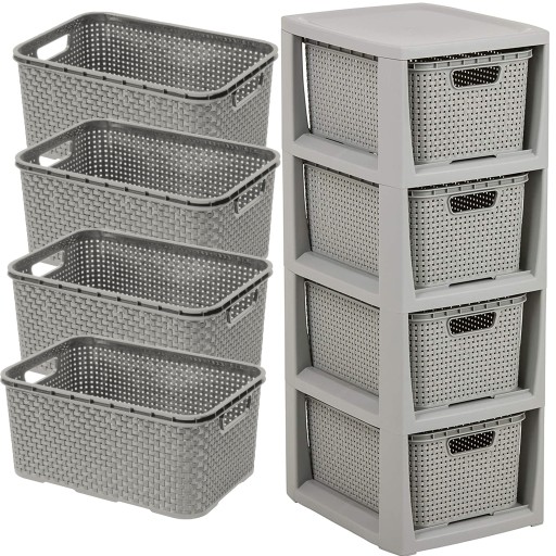 Regał Stojak z 4 koszami rattan Branq - SZARY