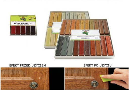 Wosk miękki do wypełniania uszkodzeń w meblach z drewna, płyty i tworzyw sztucznych. Doskonale wypełniający ubytki, wodoodporny, można lakierować. Również stosowany jako podkład do pisaka z farbą. Do użytku wewnątrz i na ze zewnątrz.