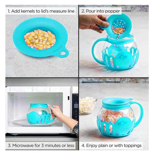 [Wysokiej jakości materiał]: Popper do popcornu w kuchence mikrofalowej wykonany ze szkła gaopeng przeznaczonego do kontaktu z żywnością, ta miska na popcorn jest odporna na ciepło.