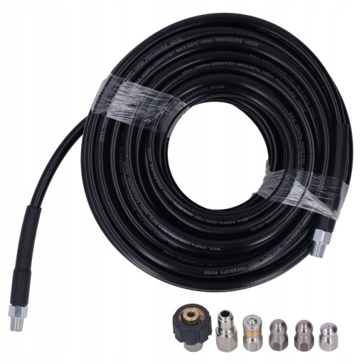 Specyfikacja: Typ artykułu: zestaw do czyszczenia kanalizacji Materiał: ABS i metal Długość węża wodnego: 100 stóp Łącznik: gwint żeński M22 do 1/4 cala NPT Szybkozłączka: 1/4 cala Montaż: używany do czyszczenia samochodów, motocykli, podłóg, okien, podjazdów, dachów, bocznicy, zlewu, toalety, na zewnątrz, wewnątrz itp.