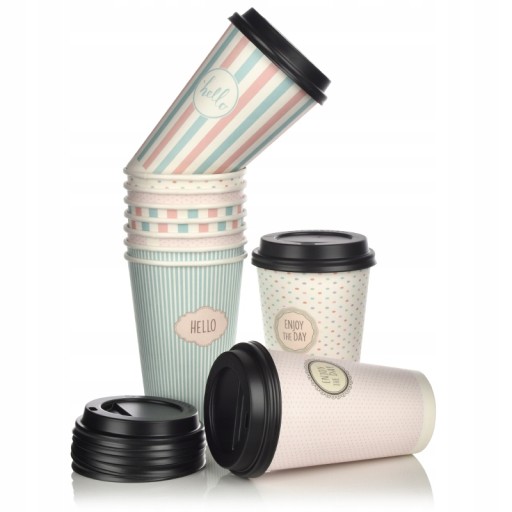 Kubki papierowe z delikatnym nadrukiem w paski oraz urokliwym napisem "Hello" są praktyczne i estetyczne. Mają harmonijne połączenie pastelowych odcieni białego i niebieskiego, a napis "Hello" dodaje uroku. Mają pojemność 250 ml i są idealne na różne napoje. Opakowanie zawiera 100 sztuk i są solidnie wykonane z trwałego papieru. Kubki są doskonałe zarówno do użytku domowego, jak i profesjonalnego.
