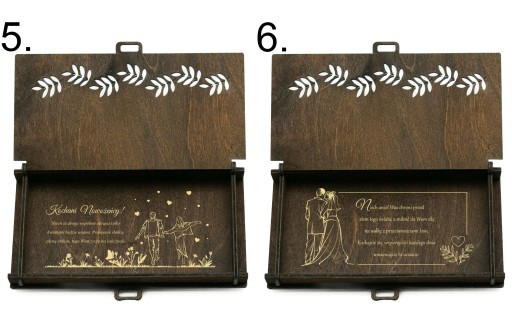 Pięknie zaprojektowane pudełko z uroczym grawerem z pewnością będzie przypominać młodej parze o ich wspaniałym dniu przez długi czas!