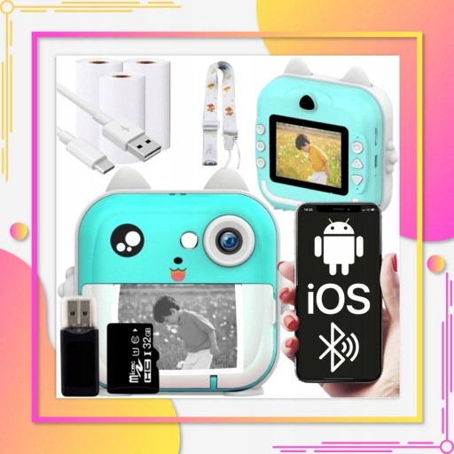 ДЕТСКАЯ МГНОВЕННАЯ КАМЕРА DRUKUŚ С КАРТОЙ 32 ГБ + 3 РОЛИКА