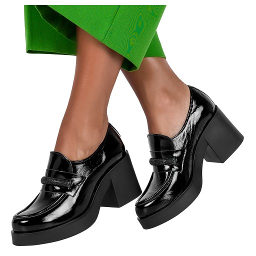 Czarne mokasyny skórzane damskie model 20157 zostały wyprodukowane w Polsce z najlepszych gatunków skór. Ręczne wykonanie butów gwarantuje doskonałą jakość i dopasowanie do stopy. Wnętrze obuwia zostało wytworzone z wysokiej jakości skóry lakierowanej, która zapewnia maksymalny komfort użytkowania. Te buty cechują się ponadczasowym fasonem z charakterystycznymi przeszyciam. Ich dodatkową cechą jest ozdobny pasek z cyrkoniami umieszczony na cholewce, dodający butom luksusowego i ekskluzywnego wyglądu. Słupkowy obcas zapewnia stabilnośc podczas chodzenia i nadaje im kobiecego uroku i klasy. To ponadczasowy i wszechstronny model obuwia, który można nosić zarówno z eleganckimi spódnicami lub sukienkami, jak i z jeansami. Mokasyny z cyrkoniami są popularnym wyborem na wieczorne wyjścia, imprezy, wesela lub inne okoliczności, gdzie ważny jest wyjątkowy i efektowny wygląd. Dzięki ich wygodzie i stylowej formie stanowią doskonałe połączenie modnego designu z funkcjonalnością. W sklepie Casu znajdziesz wiele wariantów tego modelu.