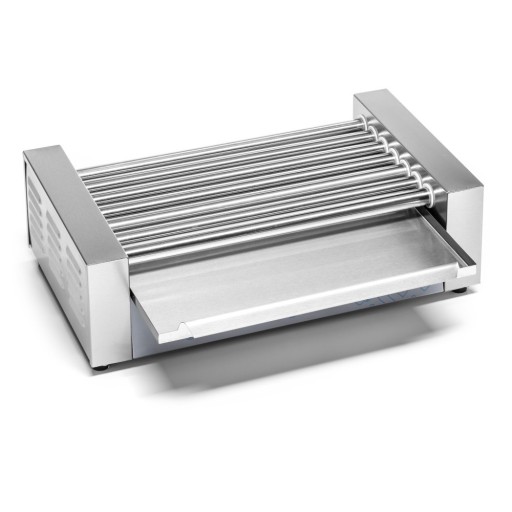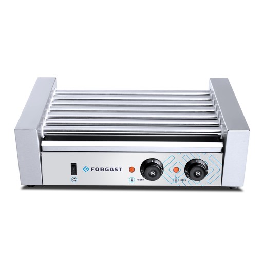 Rolkowy opiekacz do parówek marki Forgast. Wytrzymała konstrukcja ze stali nierdzewnej. 7 obrotowych rolek ze stali nierdzewnej. W grillu znajdują się dwa termostaty odpowiadające za pracę przednich i tylnych rolek.
