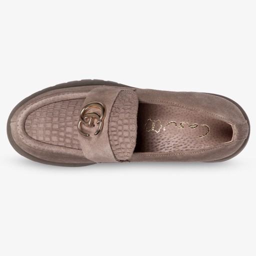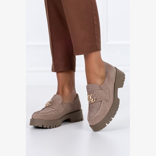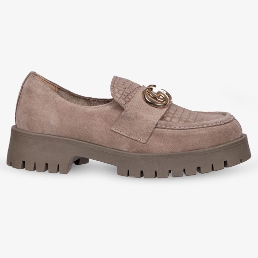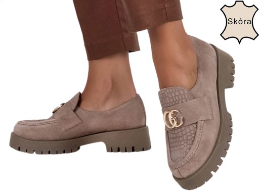 Beżowe mokasyny skórzane damskie model 20153 zostały wyprodukowane w Polsce z najlepszych gatunków skór. Ręczne wykonanie butów gwarantuje doskonałą jakość, wygodę i dopasowanie do stopy. Wnętrze obuwia zostało wytworzone z wysokiej jakości skóry, która zapewnia maksymalny komfort użytkowania. Beżowe mokasyny to niezwykle stylowe obuwie, które idealnie łączy elegancję z casualowym wyglądem. Piękny odcień beżu nadaje im subtelnego uroku, dzięki czemu świetnie pasują zarówno do codziennych, jak i bardziej formalnych stylizacji. Złota ozdoba umieszczona na cholewce dodaje tym mokasynom luksusowego akcentu, przyciągając wzrok i nadając im unikalnego charakteru. To efektowny detal, który podkreśla ich elegancki wygląd. Podeszwa z rowkami to praktyczne rozwiązanie, które gwarantuje doskonałą przyczepność na różnych powierzchniach. Nie tylko sprawia, że mokasyny są stabilne i wygodne w chodzeniu, ale również dodaje im pewnej sportowej dynamiki, co jest świetnym połączeniem z ich klasycznym designem. Są doskonałym wyborem dla osób, które cenią sobie wyjątkowy styl, komfort i jakość wykonania. Sprawdzą się zarówno na co dzień, uzupełniając casualowe outfity, jak i na bardziej oficjalne okazje, gdzie dodadzą uroku i szyku do każdej stylizacji. Wybierz swojego faworyta na Casu.