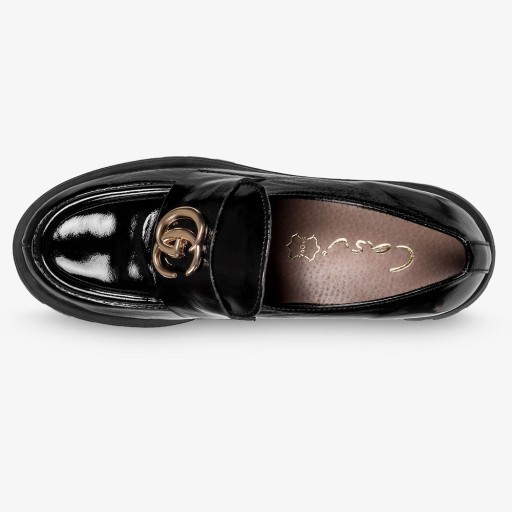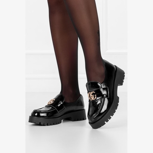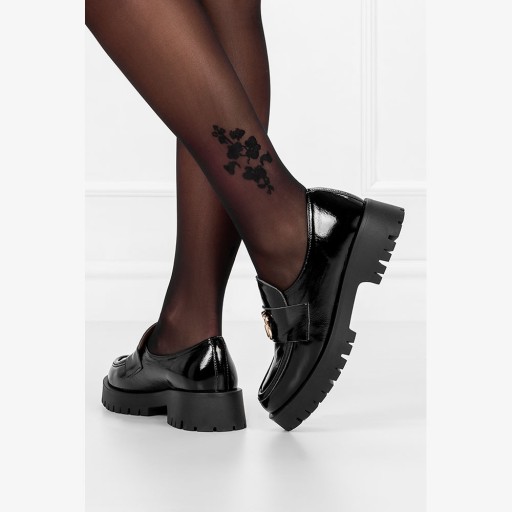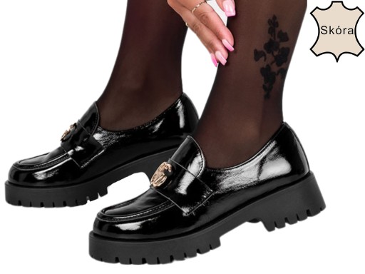 Czarne mokasyny skórzane damskie lakierowane model 20153 zostały wyprodukowane w Polsce z najlepszych gatunków skór. Ręczne wykonanie butów gwarantuje doskonałą jakość, wygodę i dopasowanie do stopy. Wnętrze obuwia zostało wytworzone z wysokiej jakości skóry, która zapewnia maksymalny komfort użytkowania. To niezwykle stylowe obuwie, które idealnie łączy elegancję z casualowym wyglądem. Lakierowana skóra nadaje im uroku, dzięki czemu świetnie pasują zarówno do codziennych, jak i bardziej formalnych stylizacji. Złota ozdoba umieszczona na cholewce dodaje tym mokasynom luksusowego akcentu, przyciągając wzrok i nadając im unikalnego charakteru. To efektowny detal, który podkreśla ich elegancki wygląd. Podeszwa z rowkami to praktyczne rozwiązanie, które gwarantuje doskonałą przyczepność na różnych powierzchniach. Nie tylko sprawia, że mokasyny są stabilne i wygodne w chodzeniu, ale również dodaje im pewnej sportowej dynamiki, co jest świetnym połączeniem z ich klasycznym designem. Są doskonałym wyborem dla osób, które cenią sobie wyjątkowy styl, komfort i jakość wykonania. Sprawdzą się zarówno na co dzień, uzupełniając casualowe outfity, jak i na bardziej oficjalne okazje, gdzie dodadzą uroku i szyku do każdej stylizacji. Wybierz swojego faworyta na Casu