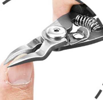 Cęgi wyposażone są w sprężynę ze specjalnym systemem pozwalającyn na uniesienie wrastającej części paznokcia nad wał okołopaznokciowy. Produkt sprawdzi się nie tylko w precyzyjnym obcięcu paznokci ale umożliwi również dokładne ich wyczyszczenie.