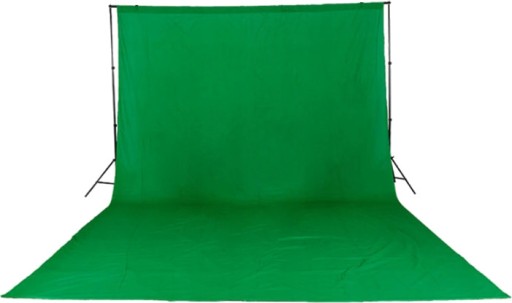 W zestawie tło materiałowe 3x3m zielone, idealne do wykorzystania jako green screen.