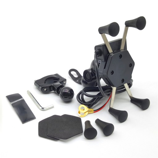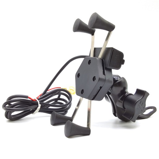 ✅ Uchwyt typu X z 4 ramionami zakończonymi gumowymi chwytakami, ładowarką USB, włącznikiem i kablem