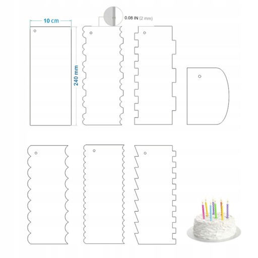 [Różne kształty]: Nasz skrobak do dekorowania ciast z różnymi krawędziami umożliwia tworzenie różnych kształtów krawędzi ciasta. Obejmuje gładką krawędź, krawędź w paski, krawędź zakrzywioną, krawędź piły, krawędź kwiatu i więcej.