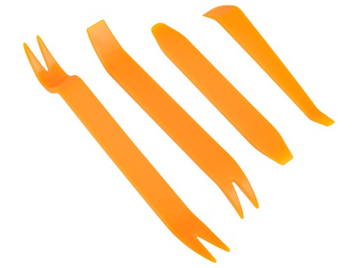 Narzędzia do demontażu wewnątrz samochodu dla profesjonalistów i warsztatów. Narzędzia są wykonane z wysokiej jakości materiałów, dobrze dopasowują się do dłoni. W zestawie 4 ściągacze.