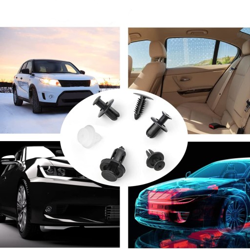 Uniwersalny zestaw 100 sztuk różnych spinek, kołków, zatrzasków samochodowych do mocowania.