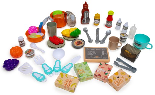 - zmieniające kolor produkty żywnościowe (krab, ryba i kotlet) - wystarczy wrzucić je do garnuszka z zimną wodą, a powoli zmienią kolor.