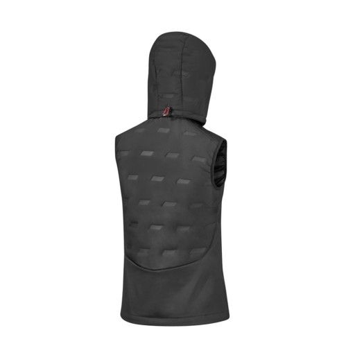Niech pogoda Cię nie zaskoczy! Kamizelka hybrydowa AMG łącząca elastyczną tkaninę softshell i mini ripstop gwarantuje niezawodną ochronę przed wiatrem i chłodem. Wyściełany, odpinany kaptur z pikowanym wzorem w kształcie rombu, osłona podbródka oraz kieszenie boczne dopełniają smukłego kroju tej kamizelki. Komfort noszenia jest tu priorytetem - regulowany sznurek wewnętrzny w pasie oraz pasek na rękawach z praktycznym zapięciem na rzep pozwalają na indywidualne dopasowanie. Dodatkowo, kamizelka damska zachwyca wzrokowo, zdobiąc się czarnym plastikowym logo z białym trójwymiarowym logo AMG na piersi.