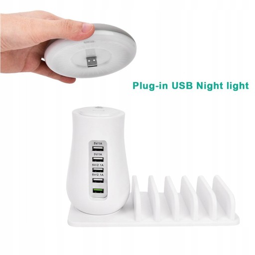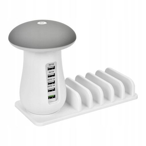 1 x stacja ładująca z wieloma portami USB stojak z lampą biurkową LED w kształcie grzybka do smartfonów/tabletów/innych gadżetów biały (wtyczka amerykańska)