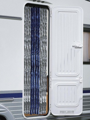 Dekoracyjna, praktyczna kurtyna drzwiowa do przyczep kempingowych, kamperów, namiotów, altanek działkowych ale także i do domu. Przyjemna w dotyku i cicha, bez irytujących grzechoczeń. Chroni przed latającymi owadami, światłem słonecznym i niechcianymi spojrzeniami. Pojedyncze żyły szenilowe są wciągnięte do szyny montażowej. Należy ją zamocować na wewnętrznej stronie pojazdu. Zapewnia dobrą cyrkulację powietrza, przy równoczesnej ochronie przed owadami.