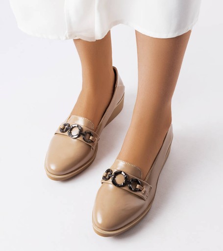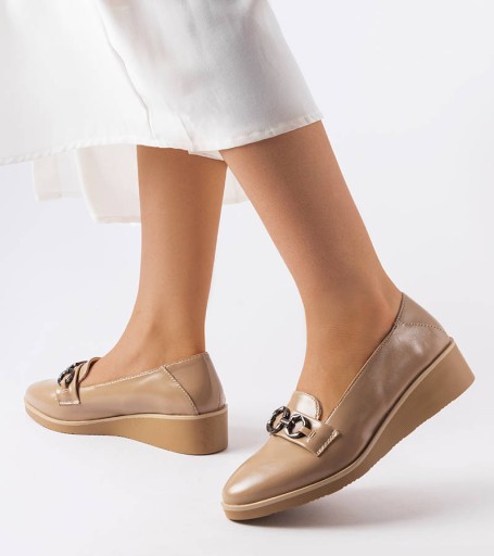 Beżowe lakierowane mokasyny na koturnie Erin