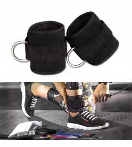 żeby pomagać wzmacniać i zwiększać siłę w nogach, udach, pośladkach i biodrach. Neoprenowy materiał z jakiego wykonano opaski zapewnia bezpieczeństwo i komfort w stawie skokowym. Wytrzymały, podwójny stalowy pierścień pozwala trenować na każdym typie wyciągu.