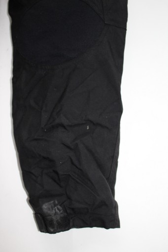 Tekstylne spodnie, zapinane na zamek, wewnątrz podszewka, brak odpinanej dopinki, w pasie po bokach lekka gumeczka, zamek do dopięcia kurtki, odcięty kawałek przy pasie tam gdzie guzik, 2 kieszonki, protektory biodra i kolana, u dołu nogawek zamki- używane stan dobry- brak kawałka przy pasie, zepsuty zamek przy kieszonce, odklejony 1 protektor na kolanie.