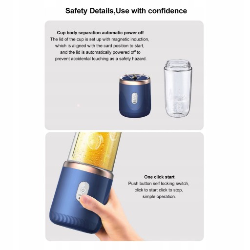 3. Bezprzewodowa konstrukcja: pożegnaj się z przewodem. Poręczna, bezprzewodowa, przenośna i lekka konstrukcja sprawia, że blender doskonale sprawdza się w podróży i na zewnątrz. Ciesz się świeżymi koktajlami zawierającymi składniki odżywcze i witaminy zawsze i wszędzie.