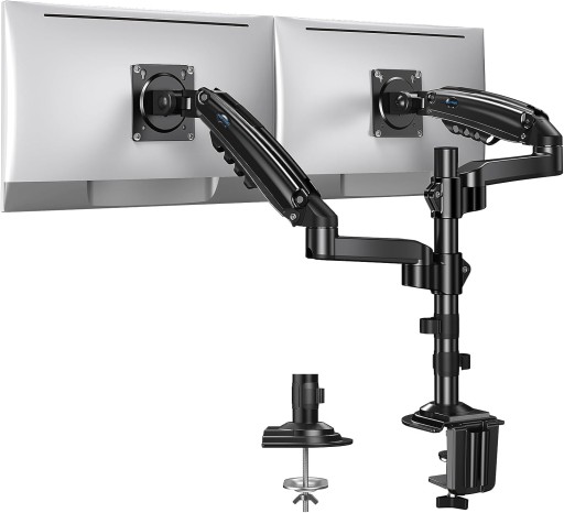 - Kompatybilność & Obciążenie - HUANUO gazowe ramiona monitora sprężyny mogą utrzymać dwa 17-32 cala TV lub monitory z Max.9 KG nośności dla każdego ramienia. Wspornik VESA obsługuje LCD / LED płaskie wyświetlacze panelowe i wyświetlacze łukowe z VESA 75 x 75 i 100 x 100 mm.