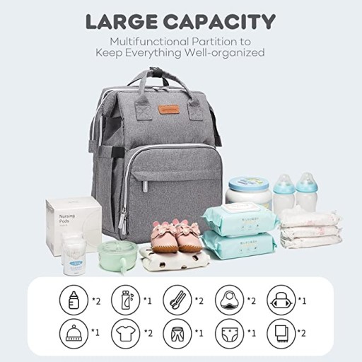 What You Get:W tym 1x główna komora (z 6 wewnętrznymi kieszeniami), 1x składany i oddychający klosz, 1x miękka podkładka zastępcza, 2x wodoodporna kieszeń, 2x izolowane kieszenie na butelki, 2x kieszeń na butelki/biurko, kieszeń na chusteczki/chusteczki dla wszystkich potrzeb dziecka.