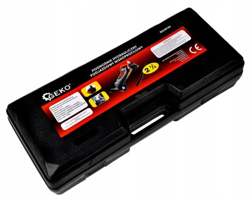 Podjazdowy podnośnik niskoprofilowy z obrotową główką firmy GEKO wykonany z grubej blachy stalowej, która zapewnia odpowiednią sztywność i wytrzymałość konstrukcji, posiada zawór spustowy zintegrowany z zaworem bezpieczeństwa.