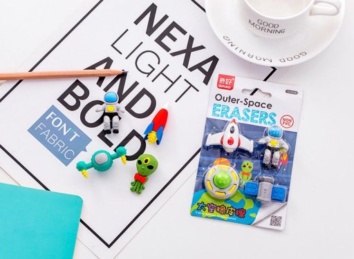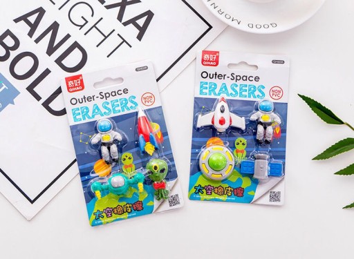 Ластики для стирания и разметки КОСМОС набор ластиков самолет НЛО ластик 4 шт