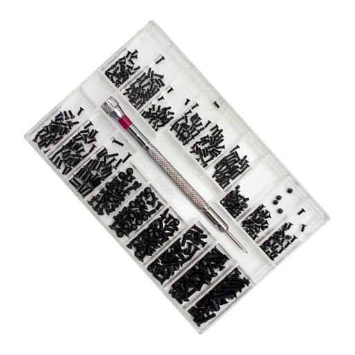 Opakowanie: 18 rozmiarów Zestaw mikrośrub M1.2 M1.4 M2, ok. 27 sztuk każdego rozmiaru, ok. 500 sztuk w pudełku.