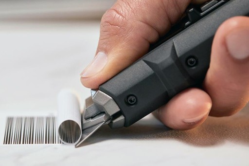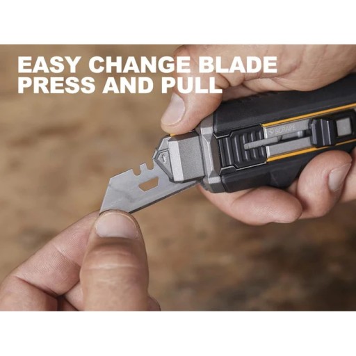 Zawiera pięć niestandardowych, uniwersalnych ostrzy ToughBuilt, które można łatwo wymienić jednym naciśnięciem przycisku i które są kompatybilne z prawie wszystkimi innymi nożami użytkowymi.
