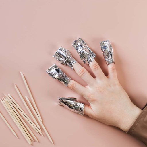 - Zdjąć waciki, a resztę lakieru hybrydowego można usunąć za pomocą drewnianych patyczków do manicure.