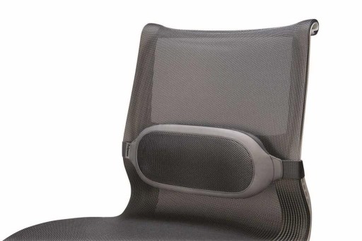 - Regulowany pasek z klamrą pozwala umieścić podpórkę na każdym krześle, dokładnie na wysokości odcinka lędźwiowego.