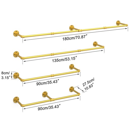 Konstrukcja naścienna - Łatwy montaż rur zgodnie z instrukcjami. A jeśli masz małe przestrzenie, możesz połączyć dwie lub trzy części i zrobić mały stojak o długości od 90cm do 180cm. Odpinany projekt, jeśli nie potrzebujesz ogromnego stojaka. Wieszak naścienny pozwalający zaoszczędzić więcej miejsca na podłodze w domu