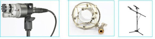 Większość uchwytów mikrofonowych, koszyków antywibracyjnych itd., posiada standardowe złącze 5/8 cala, ale niewielka ich część ma 3/8-calowe złącze.