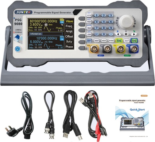 Generator funkcyjny PSG9080 to wielofunkcyjne urządzenie pełniące funkcję zaawansowanego generatora funkcyjnego oraz miernika i licznika częstotliwości. Użytkownik ma możliwość generowania przebiegów: sinusoidalnego, prostokątnego, impulsowego, CMOS, DC i kilku innych. Dodatkowa wbudowana pamięć na 99 przebiegów arbitralnych stworzonych przez użytkownika w dedykowanym oprogramowaniu na PC. Przebieg może być dowolny, w oprogramowaniu istnieje możliwość stworzenia go punkt po punkcie w zależności o potrzeb użytkownika. Maksymalna częstotliwość przebiegu sinusoidalnego może wynosić 80MHz. Przy częstotliwości próbkowania generatora 300MSa/s oraz długości przebiegu 8192 punktów na kanał. Maksymalna amplituda sygnału 25Vpp przy częstotliwości do 1MHz oraz rozdzielczość pionowej przebiegu 14 bitów. Generator umożliwia regulację częstotliwości, amplitudy, offsetu, wypełnienia oraz fazy. Wszystkie informacje na temat parametrów zarówno kanału 1 jak i 2 są wyświetlane jednocześnie.