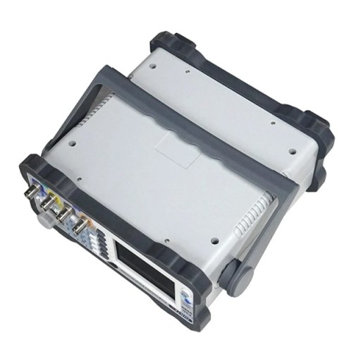 Dodatkowo znajduje się tam również informacja o tym czy dany kanał jest włączony lub wyłączony. Użytkownik może za pomocą jednego przycisku włączyć lub wyłączyć każdy z kanałów z osobna. Oprócz tego możliwe jest zablokowanie klawiatury co chroni przed przypadkową zmianą ustawień na urządzeniu. Na przednim panelu znajduje się również przycisk umożliwiający w szybki sposób zapisanie ustawianych parametrów do jednej z 20 komórek pamięci. Oprócz tego generator posiada funkcję modulacji AM, FM, ASK, PSK, FSK oraz PWM. Dodatkowo generator posiada funkcję przemiatanie częstotliwości oraz amplitudy w trybie liniowym lub logarytmicznym. Użytkownik może zdefiniować kierunek zmiany: zwiększanie, zmniejszanie lub w obu kierunkach. Generator posiada również 99 komórek pamięci do zaprogramowania generatora. Oprócz funkcji generatora urządzenie posiada możliwość pomiaru częstotliwości, okresu, cyklu pracy. Zakres pomiarowy wynosi od 1Hz do 100MHz oraz amplitudy 2Vpp – 20Vpp. Tryb licznika pozwala na zliczanie impulsów od 0 do 4294967295. Urządzenie posiada złącza wyzwalania zewnętrznego EXT, wejście oraz wyjście synchronizacji IN oraz OUT, a także wyjcie TTL. Generator może być zasilany z sieci 85 - 245V AC 50Hz lub za pomocą zasilacza 5V / 3A ze złączem DC JACK 5,5/2.1 mm. Duży kolorowy wyświetlacz LCD TFT o przekątnej 3,5” o rozdzielczości 320 x 480 oraz 64000 kolorów zapewnia wygodną pracę i nie męczy podczas użytkowania urządzenia. Urządzenie idealnie nadaje się do pracowni szkolnych, laboratoriów oraz serwisów sprzętu elektronicznego. Jego możliwości jak na sprzęt ten klasy są szerokie i jego zastosowanie praktycznie zaspakaja nawet te bardziej rozszerzone wymagania większości użytkowników.