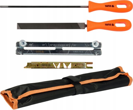 Zestaw do ostrzenia łańcuchów tnących w poręcznym i praktycznym etui, ułatwi konserwacje układów tnących pilarki. Zestaw zawiera pilnik okrągły do ostrzenia łańcucha o skoku 0.325".