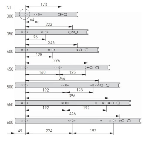 ⚠️ W zestawie komplet prowadnic (P+L) na jedną szufladę oraz wkręty montażowe