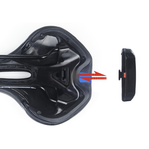 - WBUDOWANE ŚWIATŁO – dodatkowo siodełko zostało wyposażone w tylne światło, które posiada 5 trybów świecenia. Kolor świecenia to czerwony i niebieski. Ładowane za pomocą USB. Dodatkowo do ładowania można zdjąć samo światło nie trzeba ściągać całego siodełka.