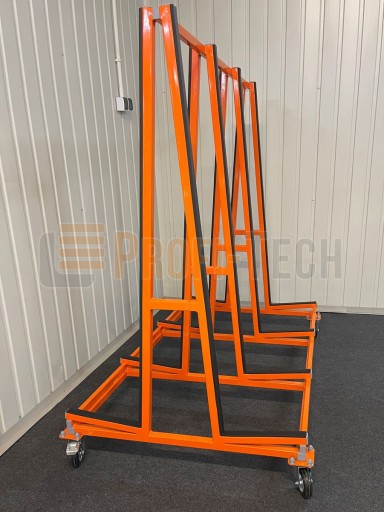Stoły, wózki, regały i stojaki wykonane są z profili stalowych, które zostały trwale zabezpieczone za pomocą lakierowania proszkowego, ostre krawędzie profili wypełnione są zatyczkami PVC.
