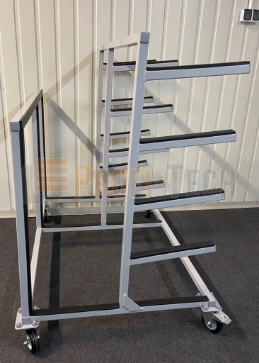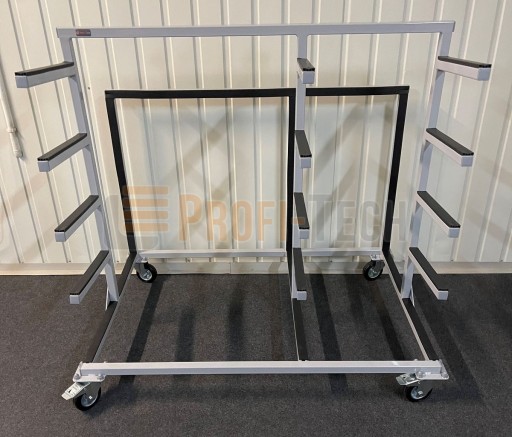 Stoły, wózki, regały i stojaki wykonane są z profili stalowych, które zostały trwale zabezpieczone za pomocą lakierowania proszkowego, ostre krawędzie profili wypełnione są zatyczkami PVC.