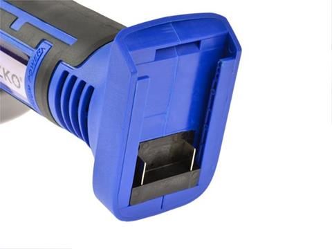 wygodna antypoślizgowa rękojeść soft grip dodatkowy uchwyt z możliwością zamontowania w 2 pozycjach blokada obrotu wrzeciona regulowana osłona tarczy odlewana aluminiowa obudowa przekładni metalowa głowica obudowa szlifierki wykonana z wytrzymałego kompozytu akumulator nie jest częścią produktu
