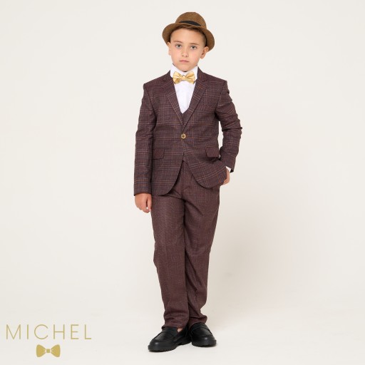 Kamizelka zapinana na 3 guziki z kolei dodaje elegancji, a także umożliwia lepsze dopasowanie garnituru do sylwetki dziecka.